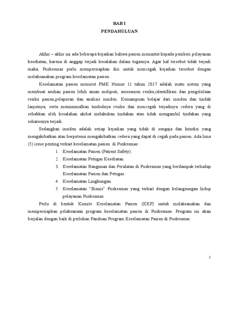 Contoh Dokumen Peningkatan Mutu dan Keselamatan Pasien Di Puskesmas