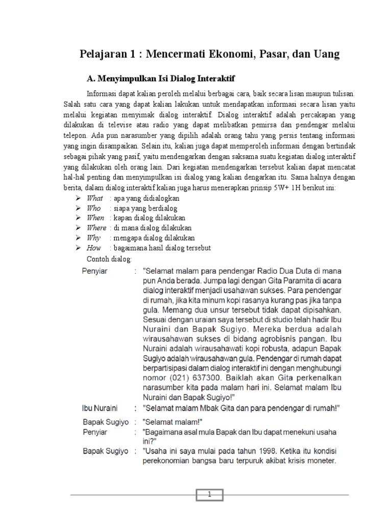 Pelajaran 1: Mencermati Ekonomi, Pasar, dan Uang: A …