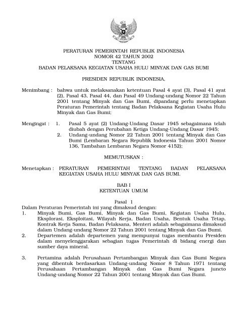 peraturan pemerintah republik indonesia nomor 42 tahun 2002 …