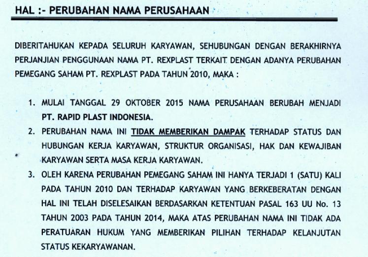 SPSI PUK PT RAPID PLAST INDONESIA CIKARANG BEKASI: PERUBAHAN NAMA PERUSAHAAN