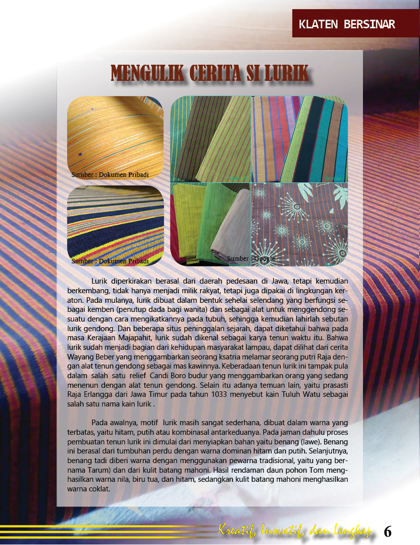LURIK ASRI SEBAGAI TARI UNGGULAN DAERAH .unggulan daerah Kabupaten Klaten Provinsi Jawa Tengah. Penelitian ini merupakan penelitian kualitatif dengan objek penelitian adalah Lurik - [PDF Document]