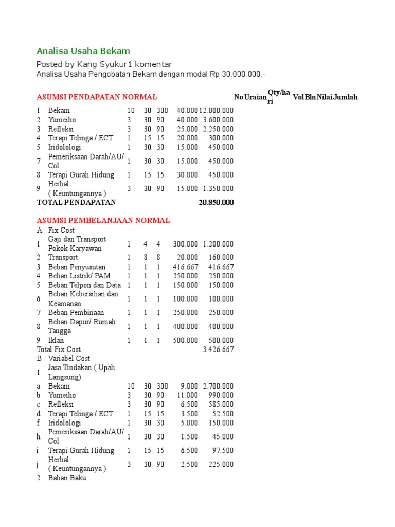 estimasi usaha bekam