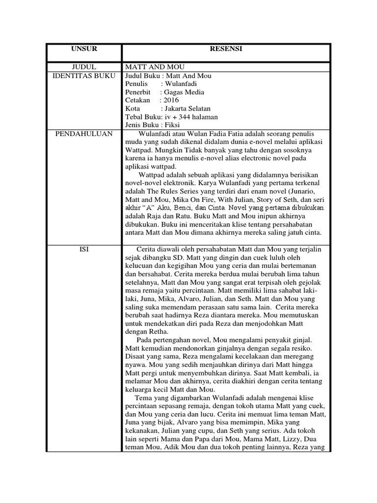 Contoh Resensi Novel Matt And Mou - Kumpulan Contoh Makalah Doc Lengkap