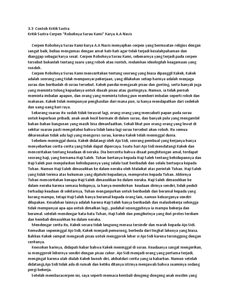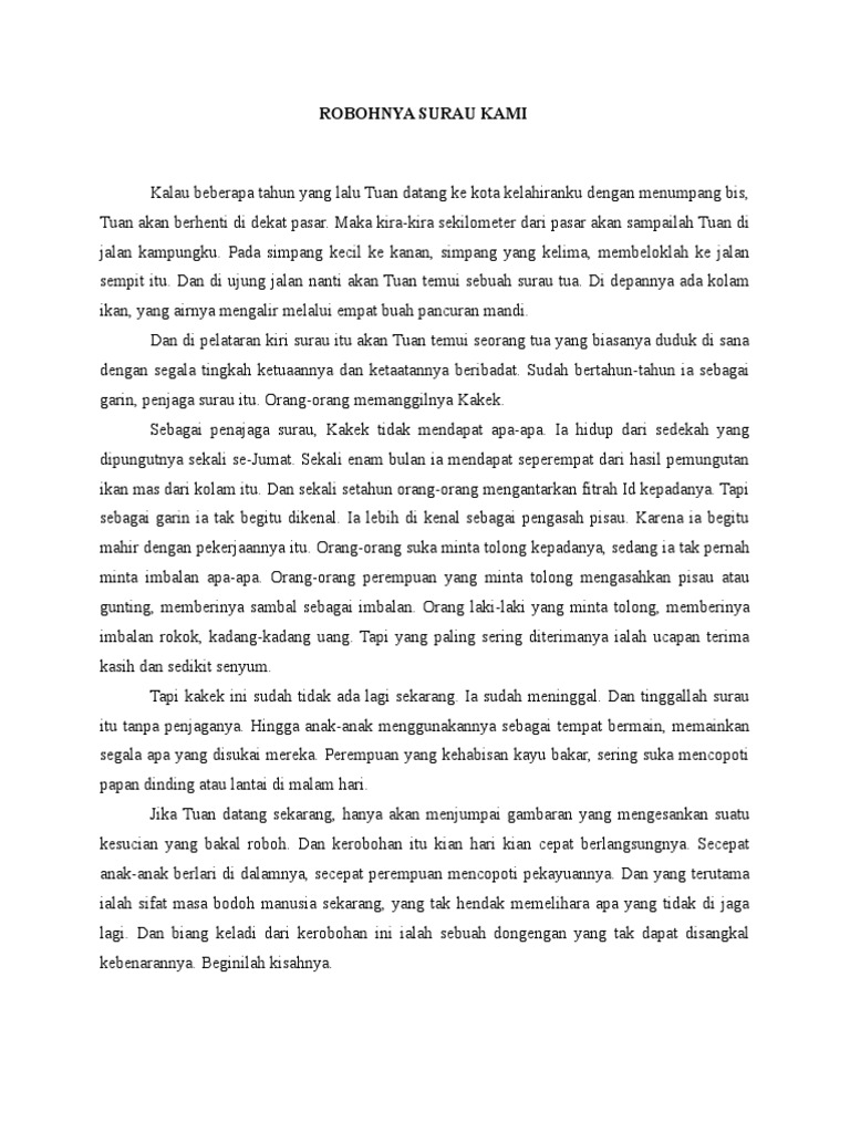 Contoh Makalah Cerpen Robohnya Surau Kami - Contoh Ria