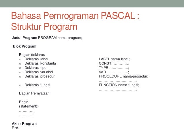 Struktur Bahasa Pemrograman Pascal Paling Pertama Adalah - Berbagai Struktur