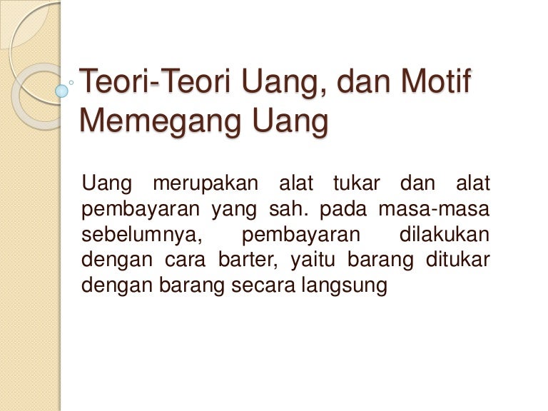 Teori teori uang, dan motif memegang uang