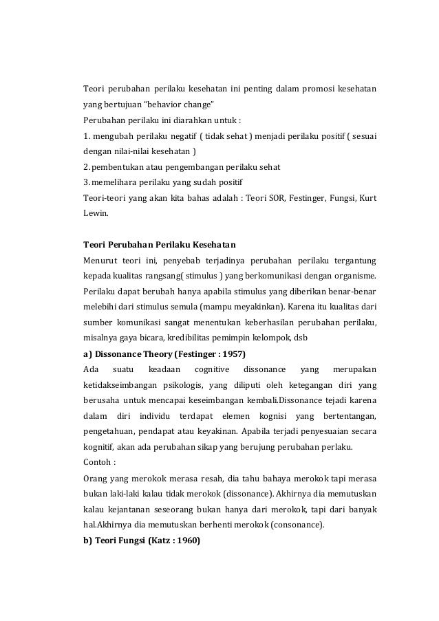 Teori Perubahan Perilaku Kesehatan