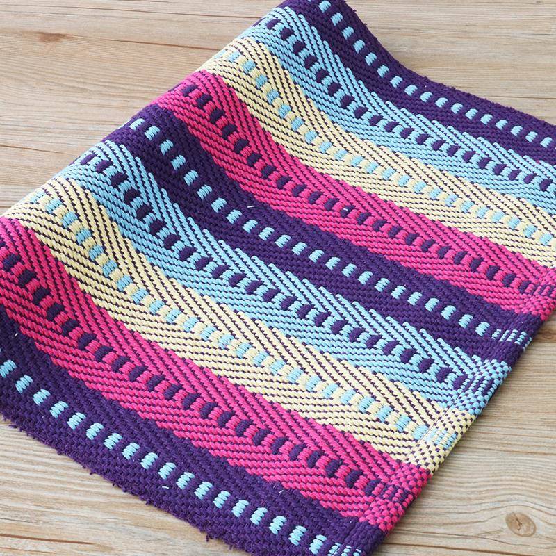 Stripe berwarna-warni dicetak meja makan tikar kain katun untuk …