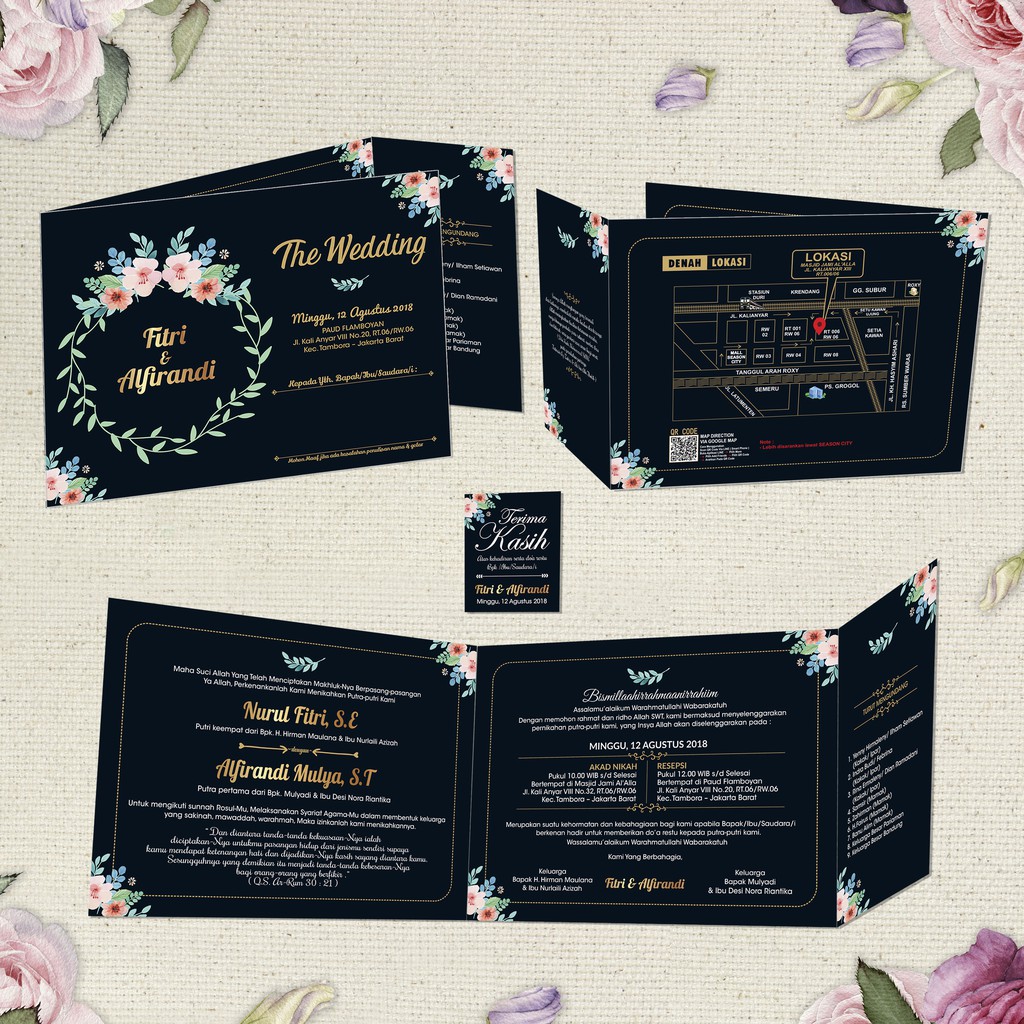 undangan pernikahan full color custom lipat 3 bentuk amplop murah rustic wedding invitation floral | Shopee Indonesia