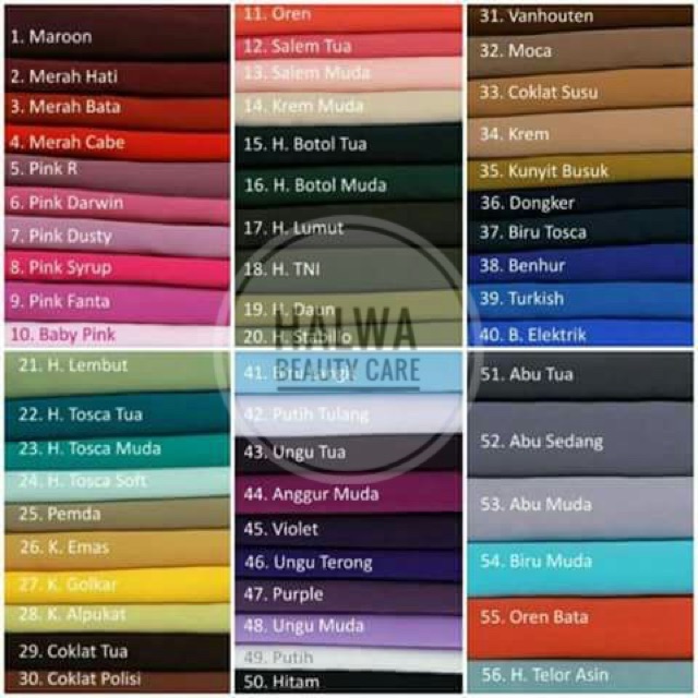 Katalog Lengkap Warna Bahan Wolfis Sausan - Jilbab Bekasi | Pilihan Hijab Terbaik di Bekasi