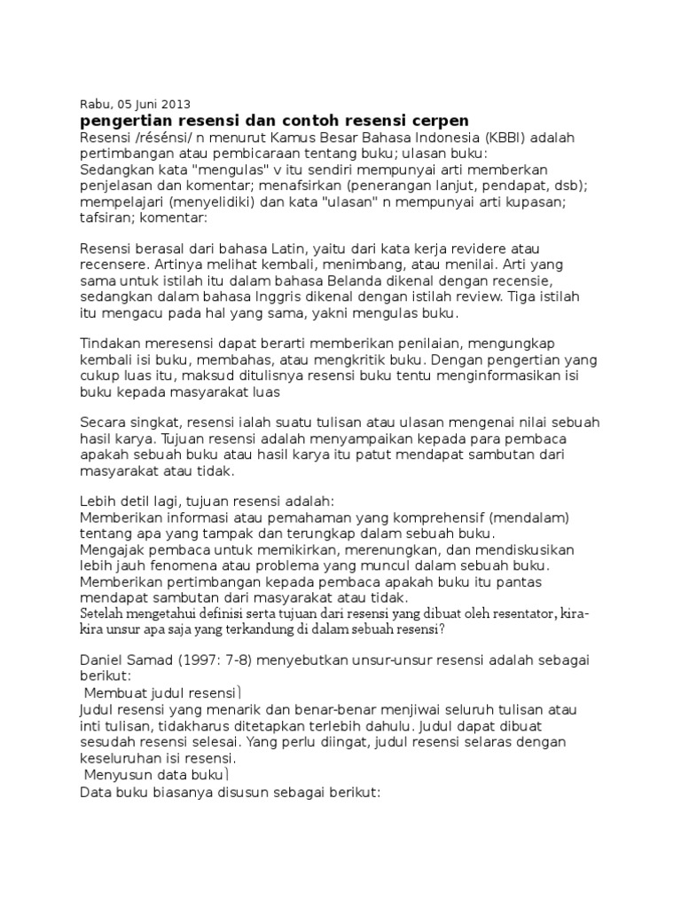 DOC) Contoh Resensi Cerpen | Dimitri Inzaghi - Academia.edu