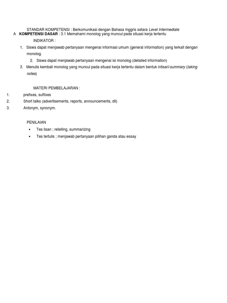 DOC) kisi kisi dan soal BAHASA INGGRIS MID TERM semester gasal kelas X | Vietrieannee D' Prinsipessa - Academia.edu