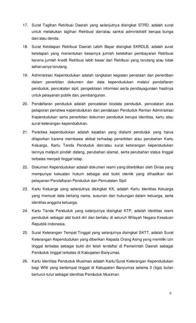 PERATURAN DAERAH KABUPATEN BANYUMAS NOMOR 6 TAHUN 2011 T E N T A N G …