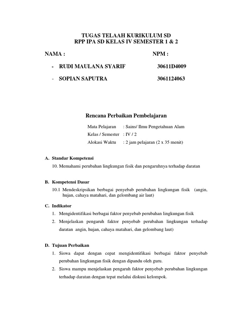 RENCANA PELAKSANAAN PEMBELAJARAN ( RPP )