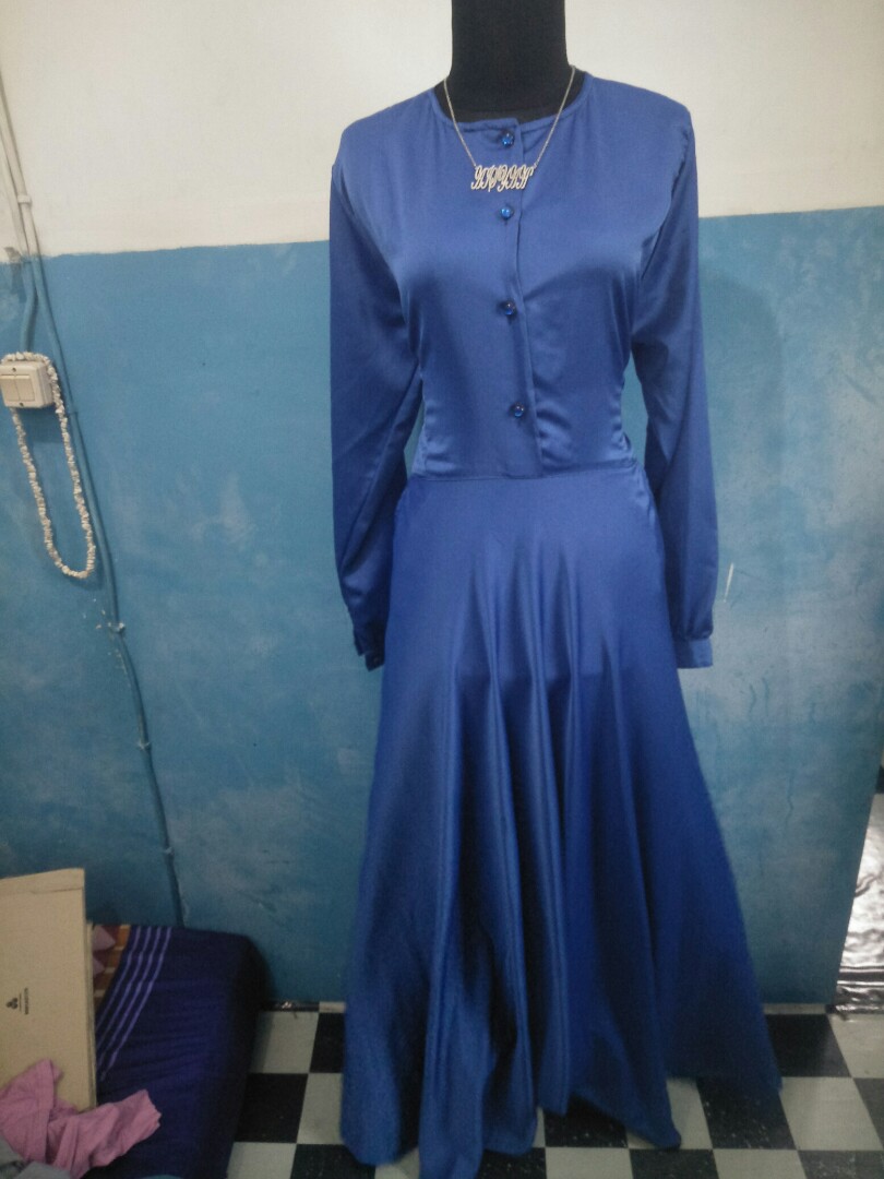 Gamis blue safir bigsize, Fesyen Wanita, Pakaian Wanita, Gaun & Rok di Carousell