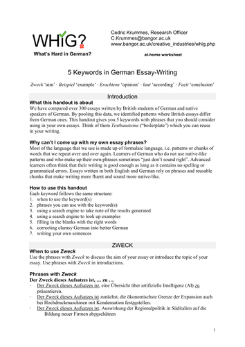 5 Keywords in German Essay-Writing | Teaching Resources
