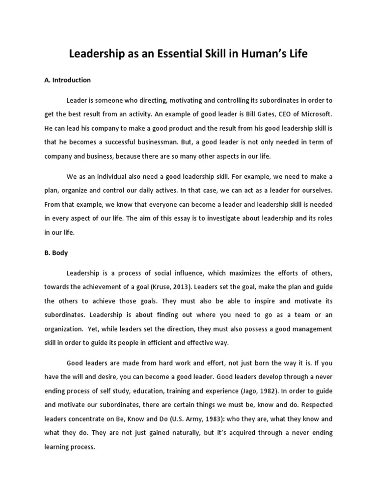 Leadership as an Essential Skill in Human’s Life: A. Introduction …