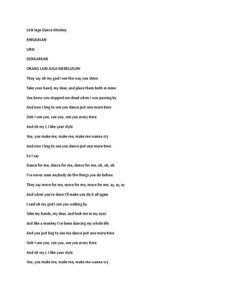 lirik lagu dance monkey lirik - Penelusuran Google | Business