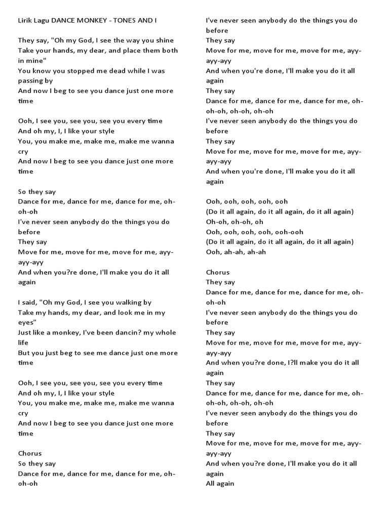 TONES AND I - Dance Monkey / Lyrics - YouTube | Lirik lagu, Lirik, Lagu
