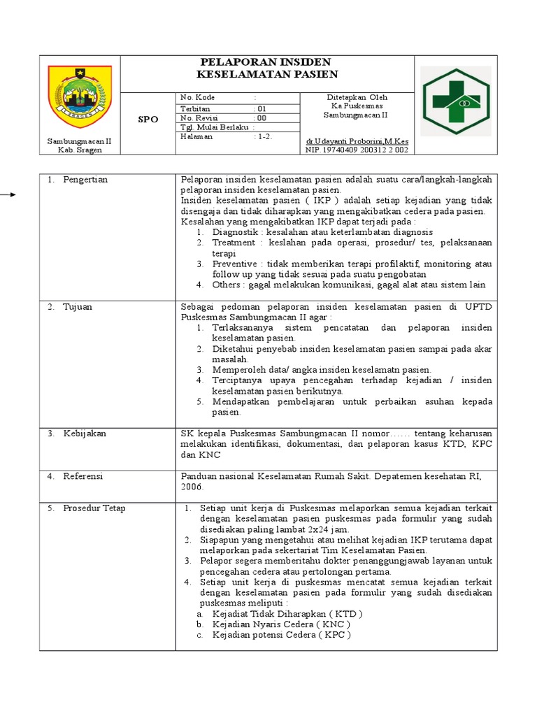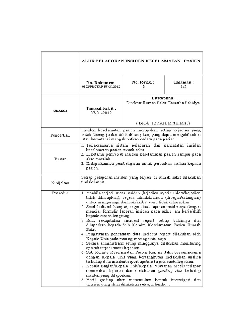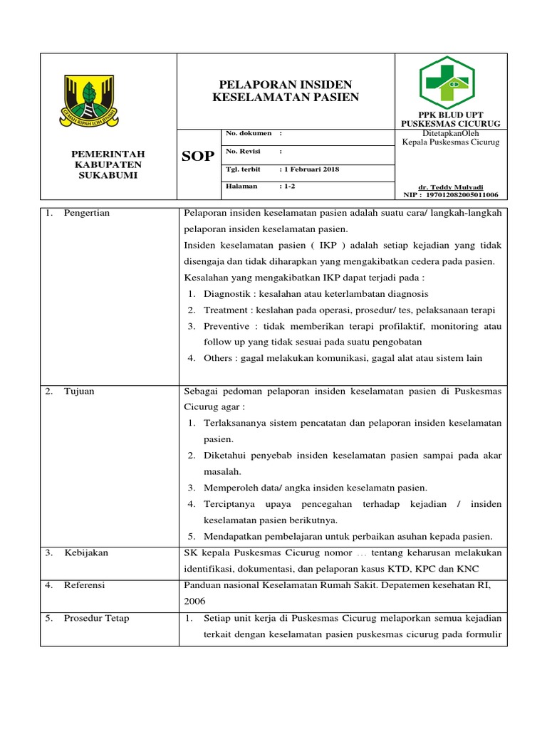 PDF) Sop Keselamatan Pasien | Rina Elfiani - Academia.edu