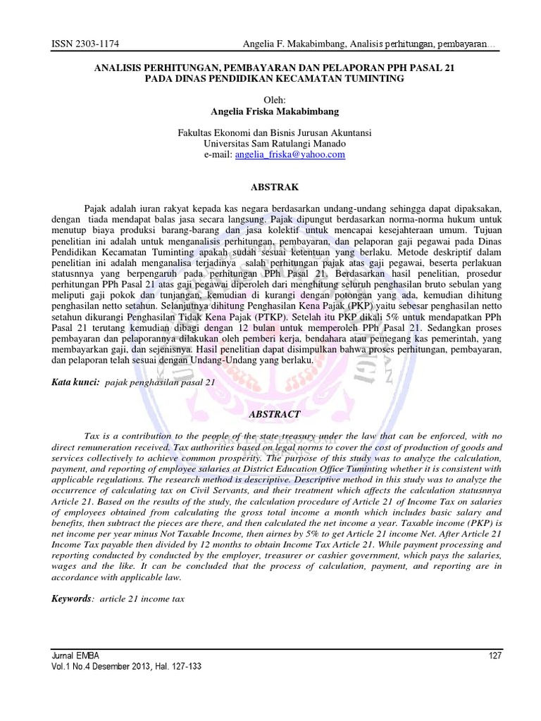 Analisis Perhitungan dan Pelaporan Pajak Penghasilan Pasal 21 pada …