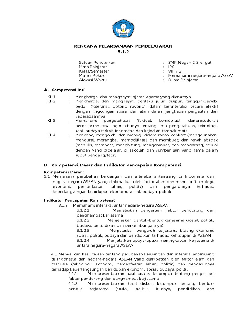 RPP No.002 K-13 IPS-VIII; Interaksi Antar Negara-negara ASEAN