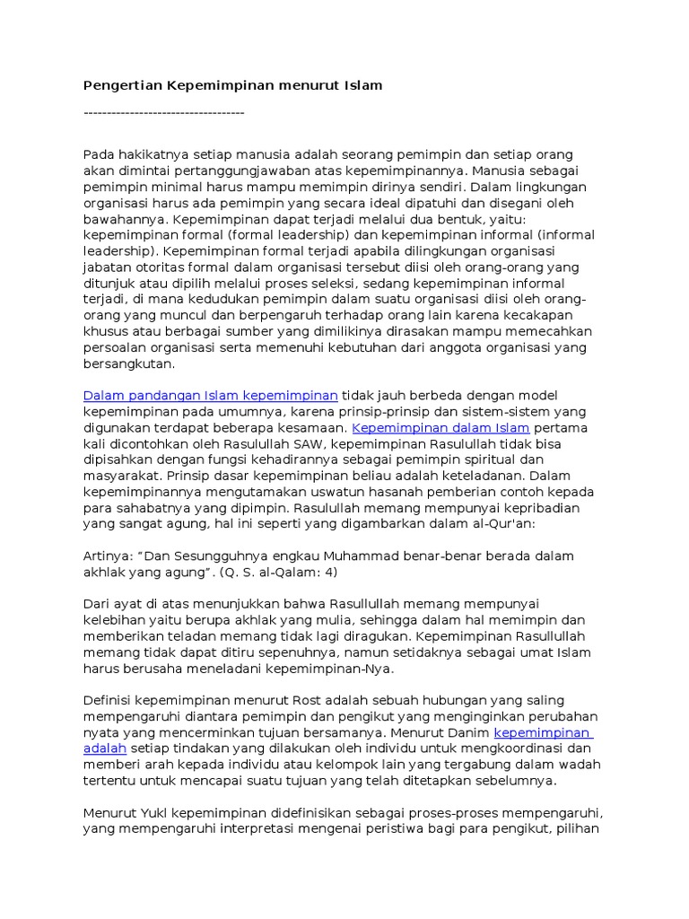 Pengertian Kepemimpinan menurut Islam.doc - [DOC Document]
