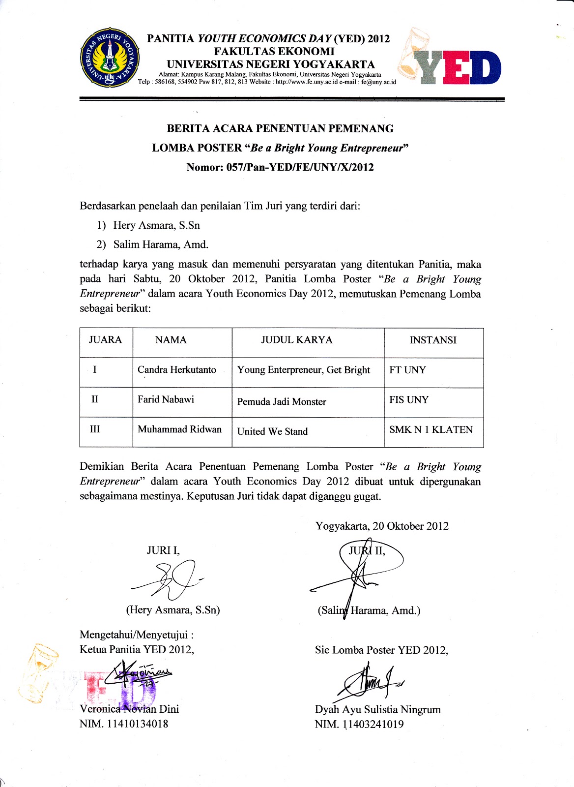 Youth Economics Day: BERITA ACARA LOMBA POSTER