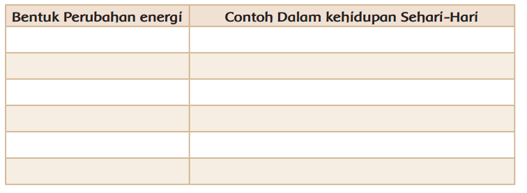 lengkapilah tabel berikut dengan nama nama benda dan perubahan energi yang terjadi saat bamda - Brainly.co.id
