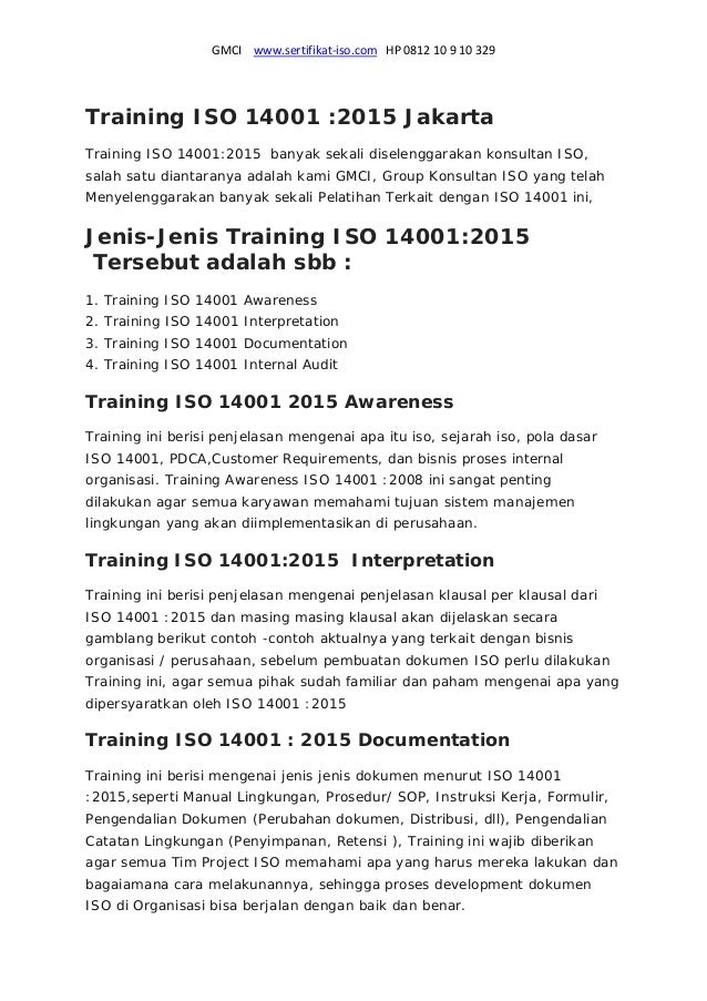 Training ISO 14001 Jakarta 2015 | Pelatihan ISO 14001 - Publik dan Inhouse Training