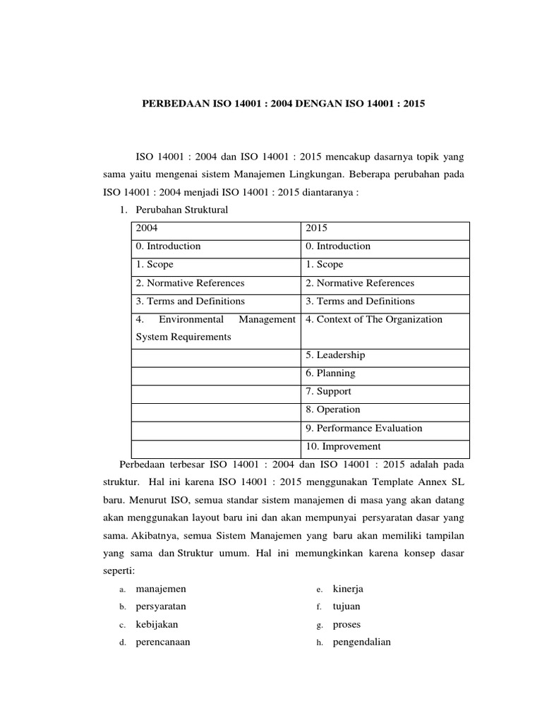Perbedaan ISO 14001 2004 Dengan ISO 14001 20015