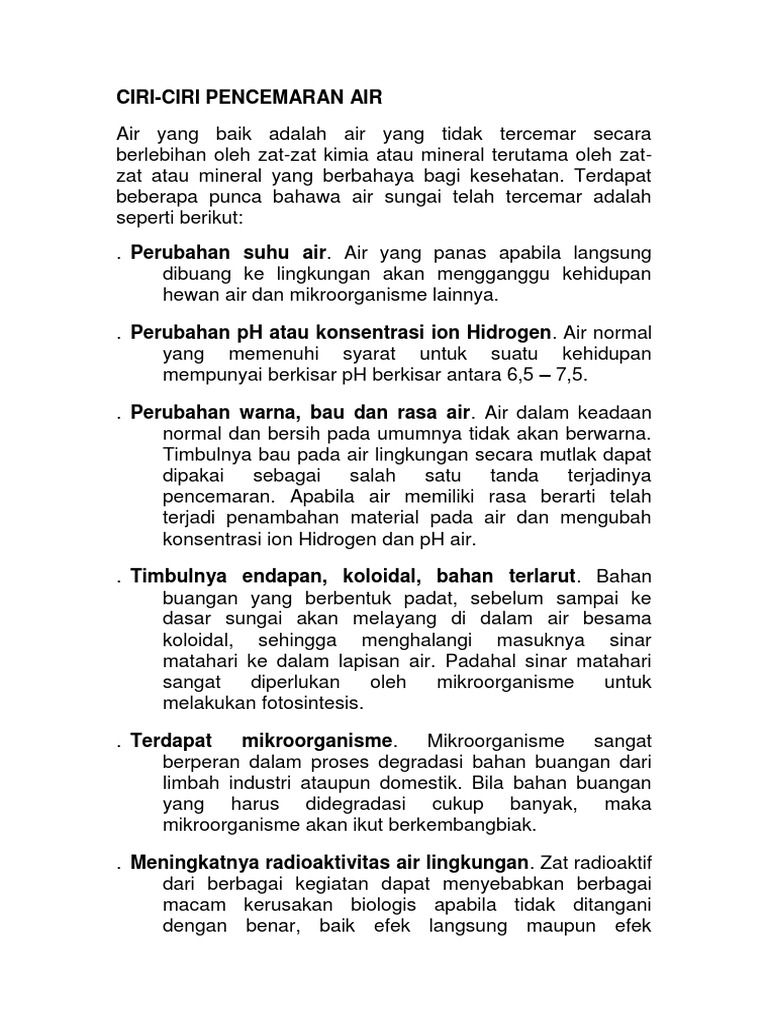 DOC) Sebab dan Akibat Pencemaran Air serta Cara Mengatasinya …