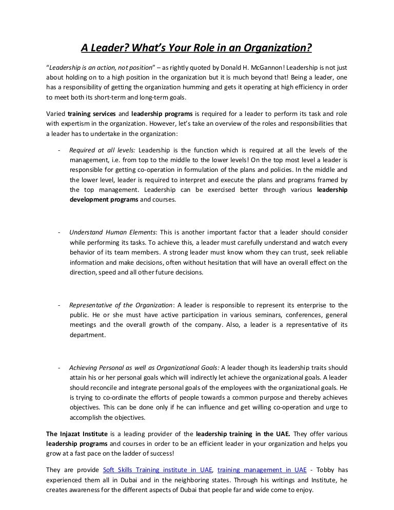 A leader what is your role in an organization