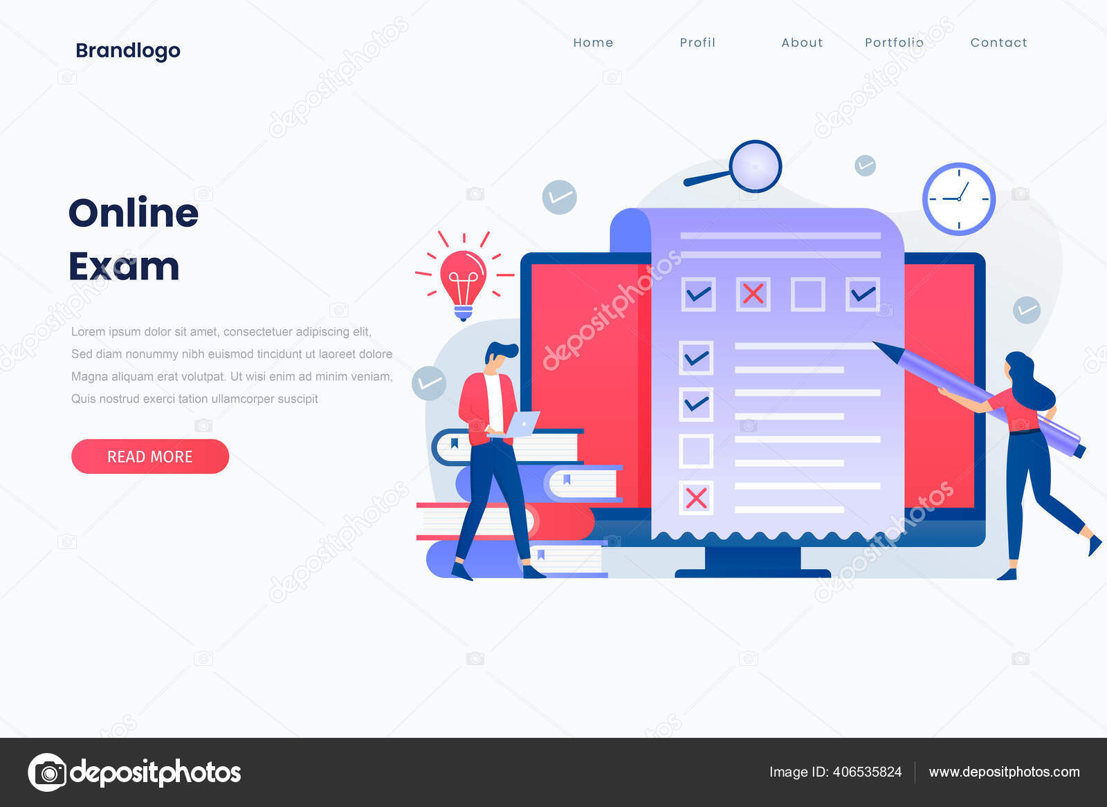 Halaman Pendaratan Situs Web Vektor Ujian Online Ilustrasi Untuk Situs — Stok Vektor © hengki12 #406535824