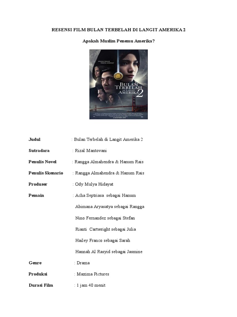 RESENSI FILM.docx - TUGAS RESENSI FILM BULAN TERBELAH DI LANGIT AMERIKA OLEH AUDINA FITRIANA NIM 310118012601 KELAS 21 PRODI SISTEM INFORMASI DOSEN BUDI | Course Hero