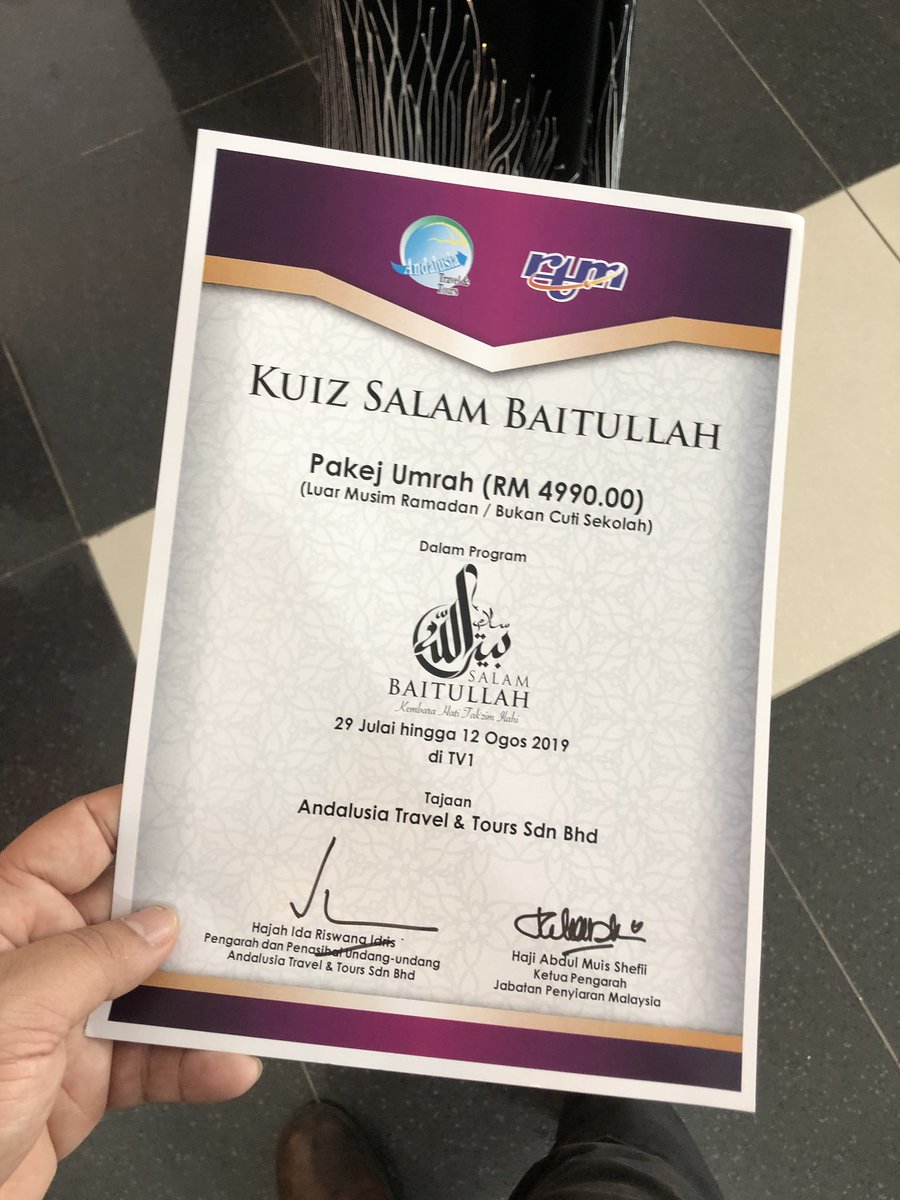 Jason Yat Samosa on Twitter: “Emak aku punyalah tunggu siri Salam Baitullah sebanyak 16 episod dkat TV1 haritu,last2 rzeki dpt dkat ak pergi ke UMRAH. Sbb emak aku xda fb,dia sruh ank2
