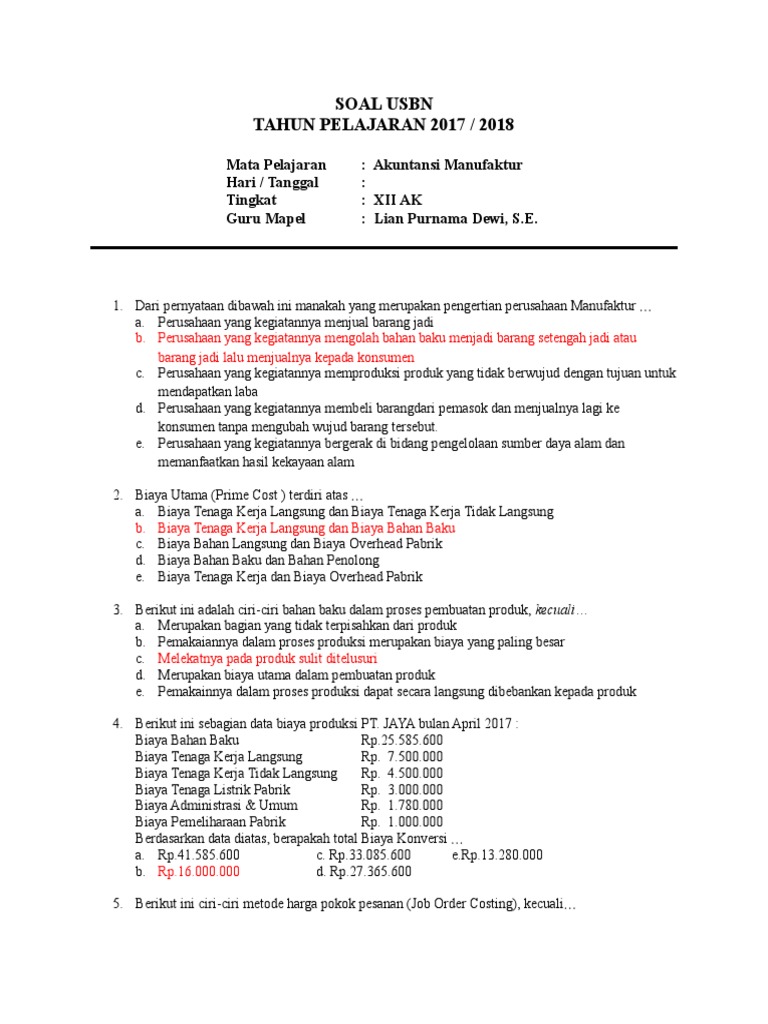 15 Contoh Soal Pilihan Ganda Akuntansi Perusahaan Manufaktur Dan Jawabannya - Pilihan Ganda