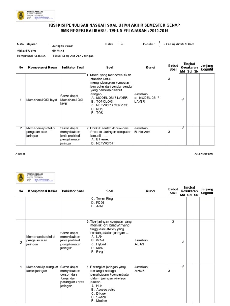 Contoh Soal Jaringan Dasar Kelas 10 Semester 1 Kurikulum 2013 - Inputsoal.com