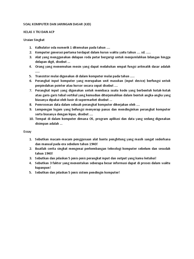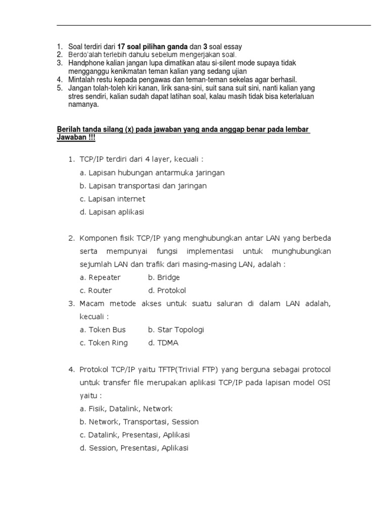 DOC) Soal Essay 1-10 TKJ | cakar lele - Academia.edu