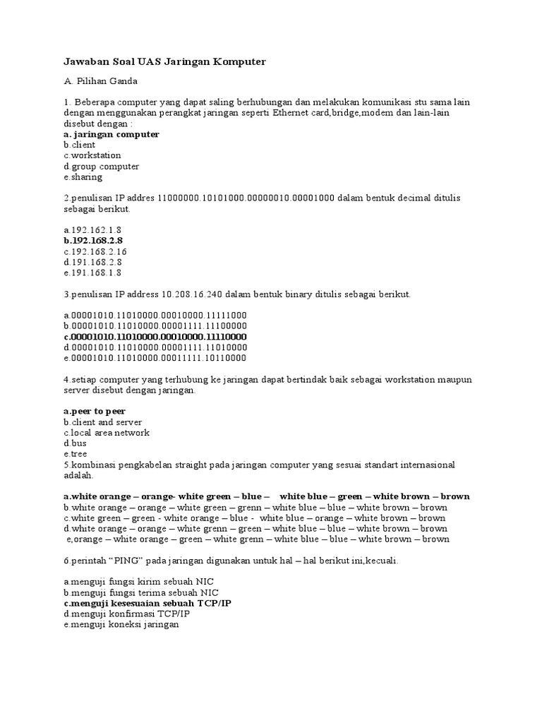 Soal Latihan Jaringan Dasar Komputer Beserta Jawabannya