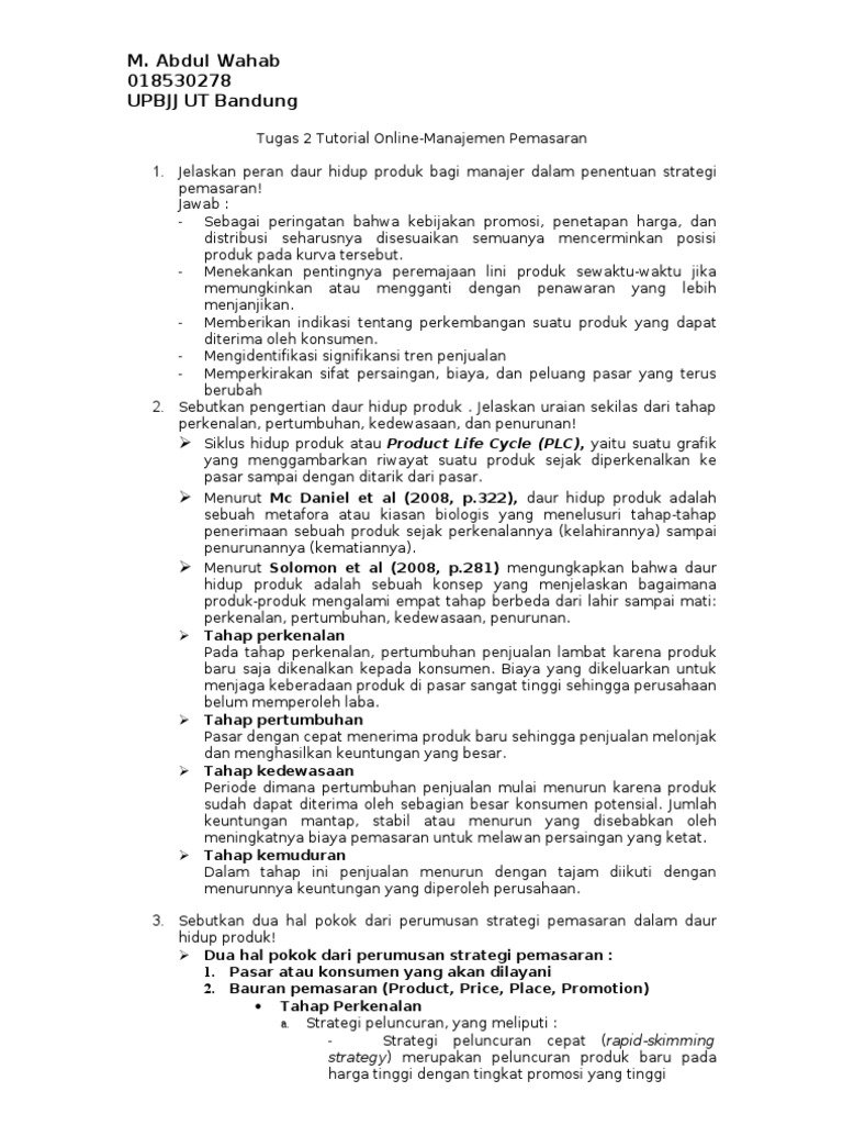 Tugas2 Manajemen Pemasaran M. Abdul Wahab (018530278)