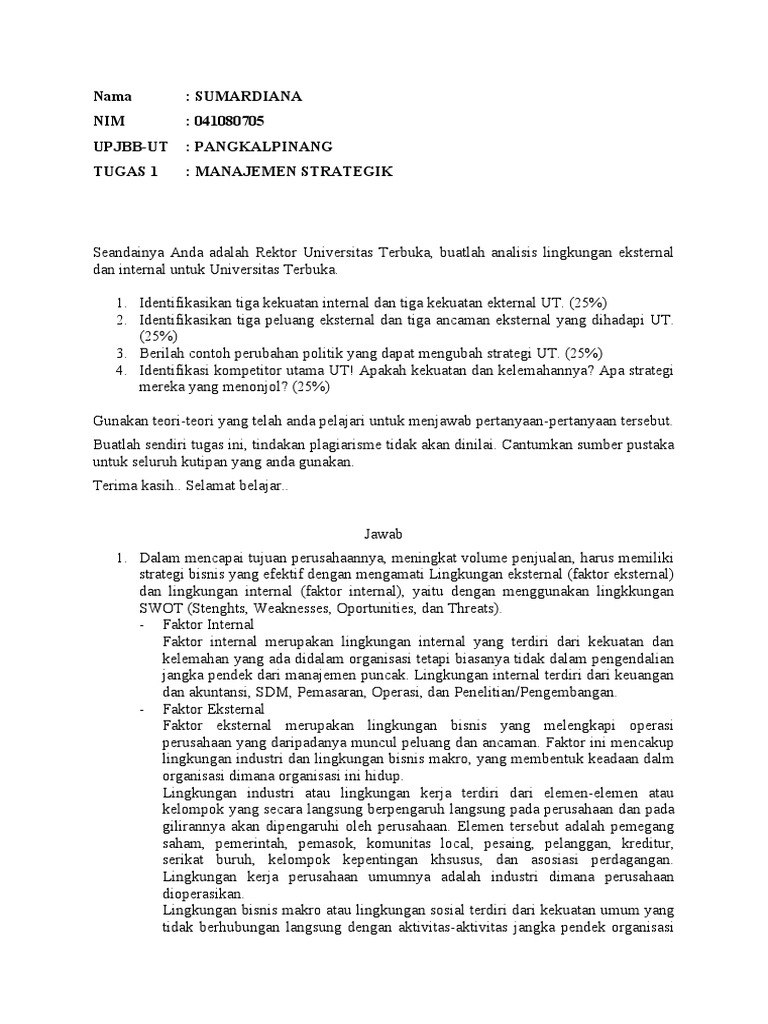 DOC) TUGAS MANAJEMEN STRATEJIK | hambali s.ap - Academia.edu
