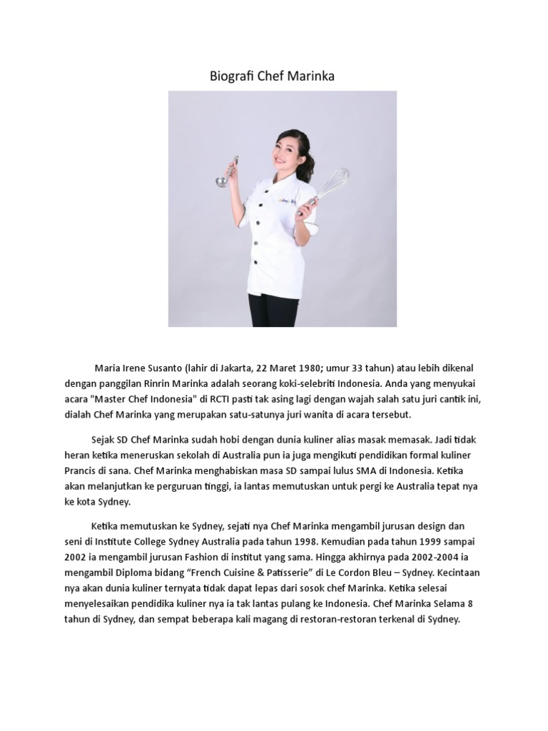 Descriptive Text Chef Marinka | SEKOLAH OKE