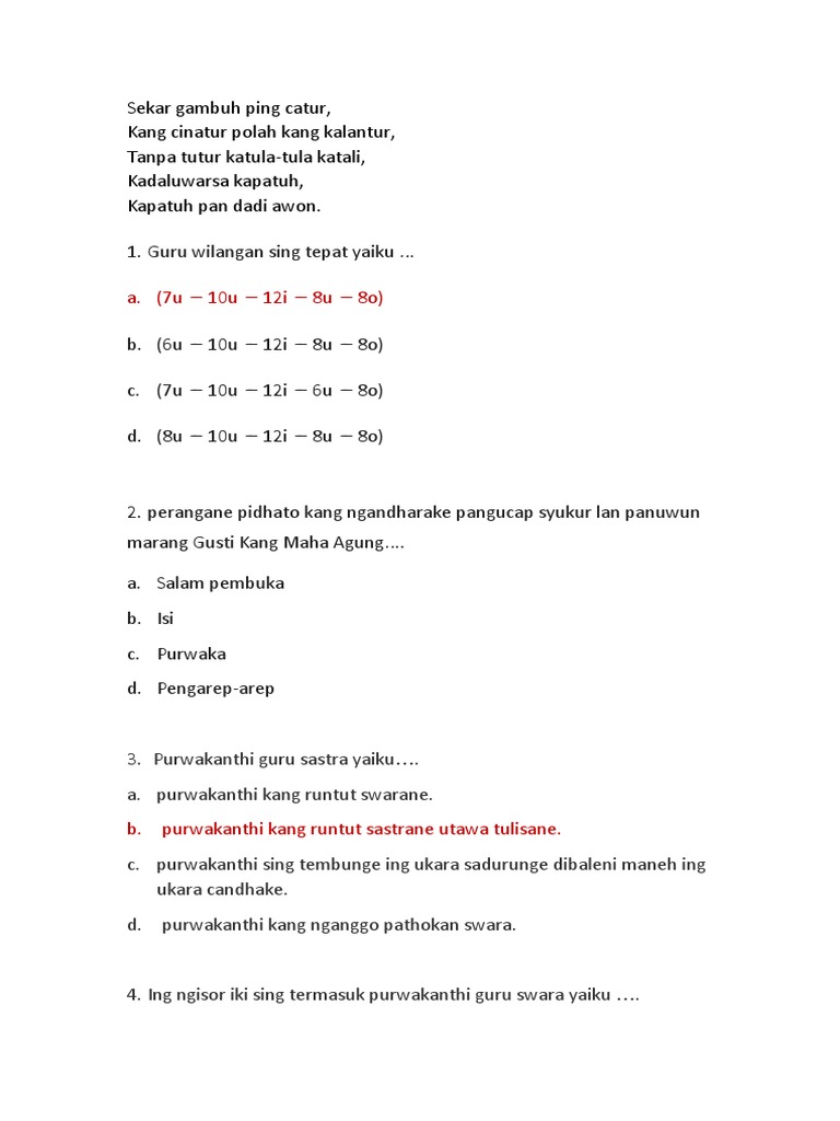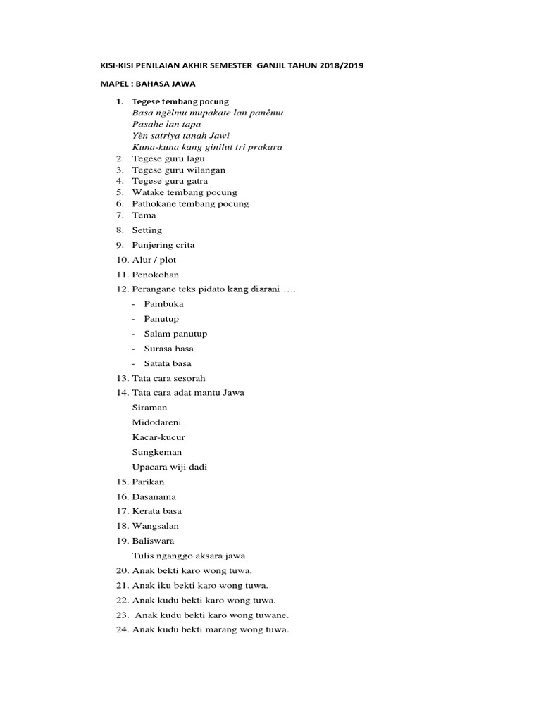 Latihan UTS Bahasa Jawa Kelas 9 Semester 1