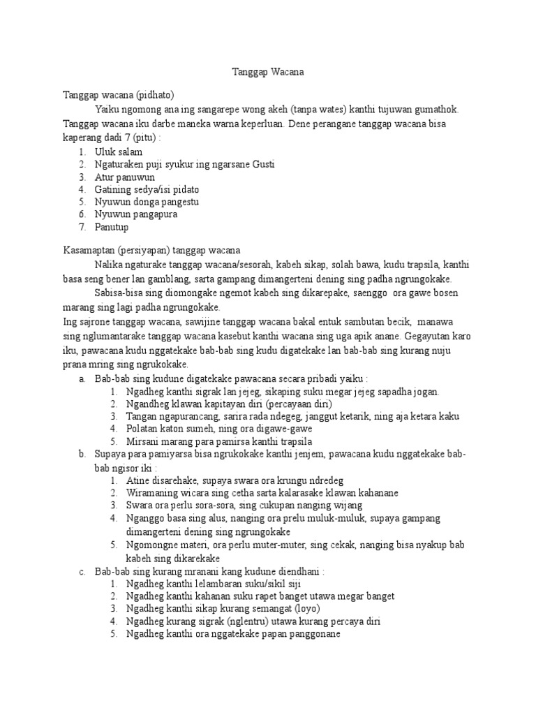 gawea tanggap wacana ( pidato bhs jowo) bab opo wae sak karepamu …