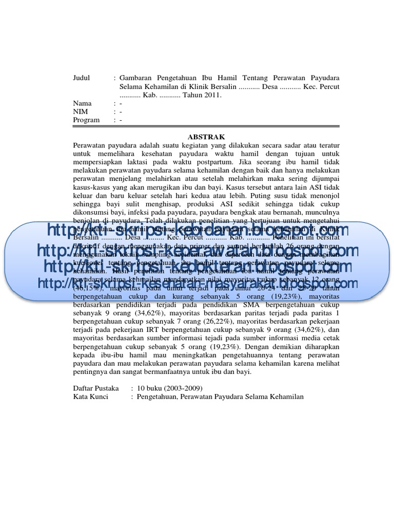 KTI Skripsi No.9 Gambaran Pengetahuan Ibu Hamil Tentang Perawatan Payudara Selama Kehamilan Di Desa