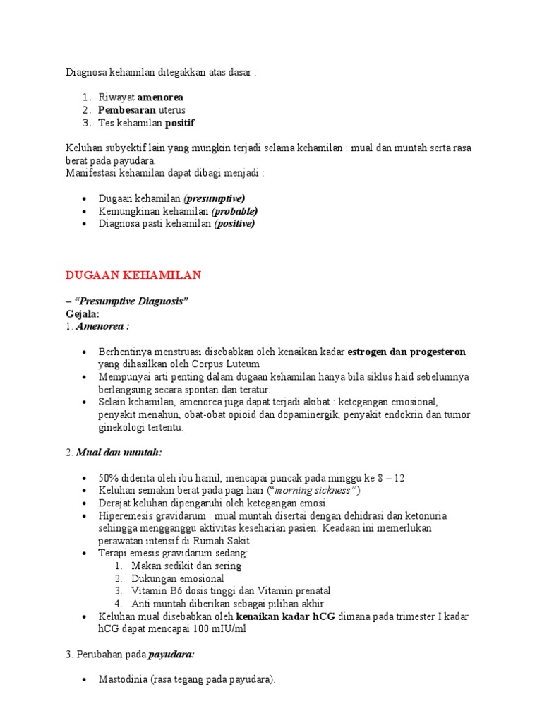Diagnosa Kehamilan Ditegakkan Atas Dasar