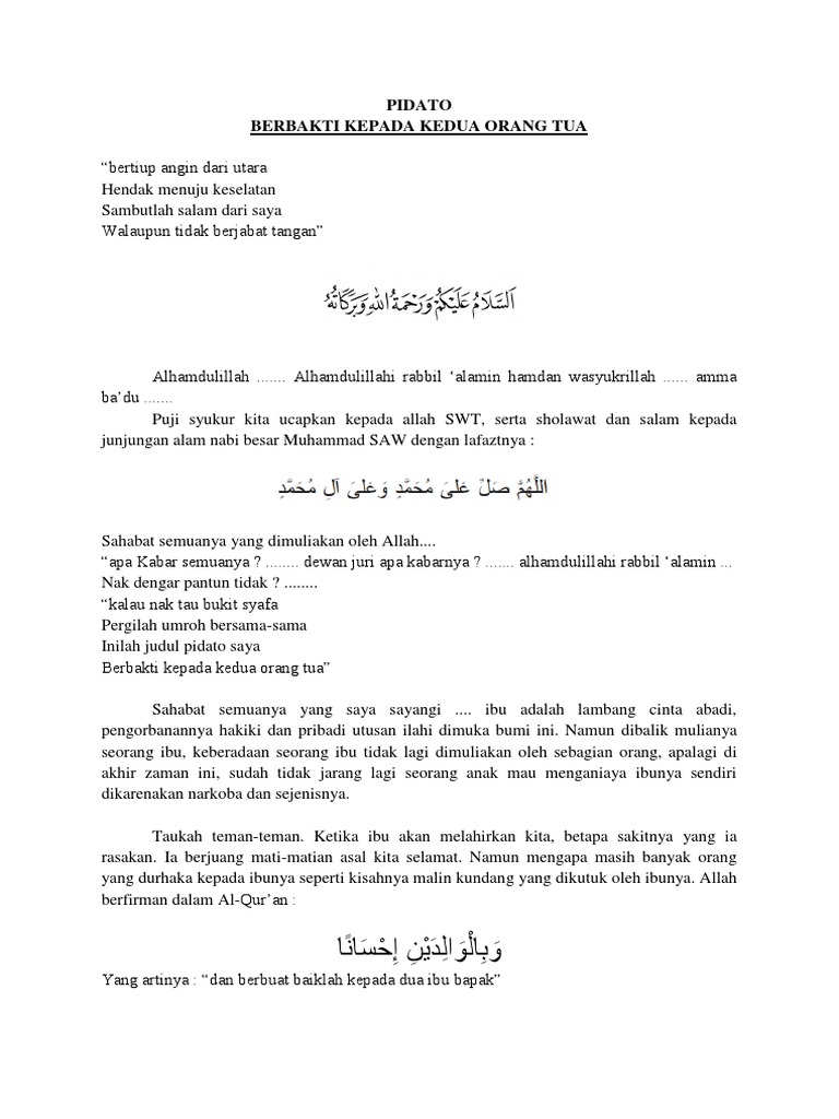 DOC) Pidato Bahasa Indonesia Ceramah " BERBAKTI KEPADA ORANG TUA'' | fikri zikri - Academia.edu