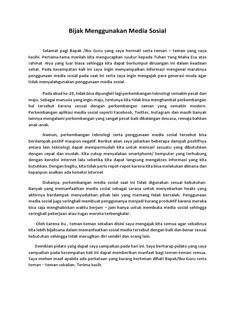 Contoh Pidato Tentang Bijak Bermedia Sosial - Pidato Singkat