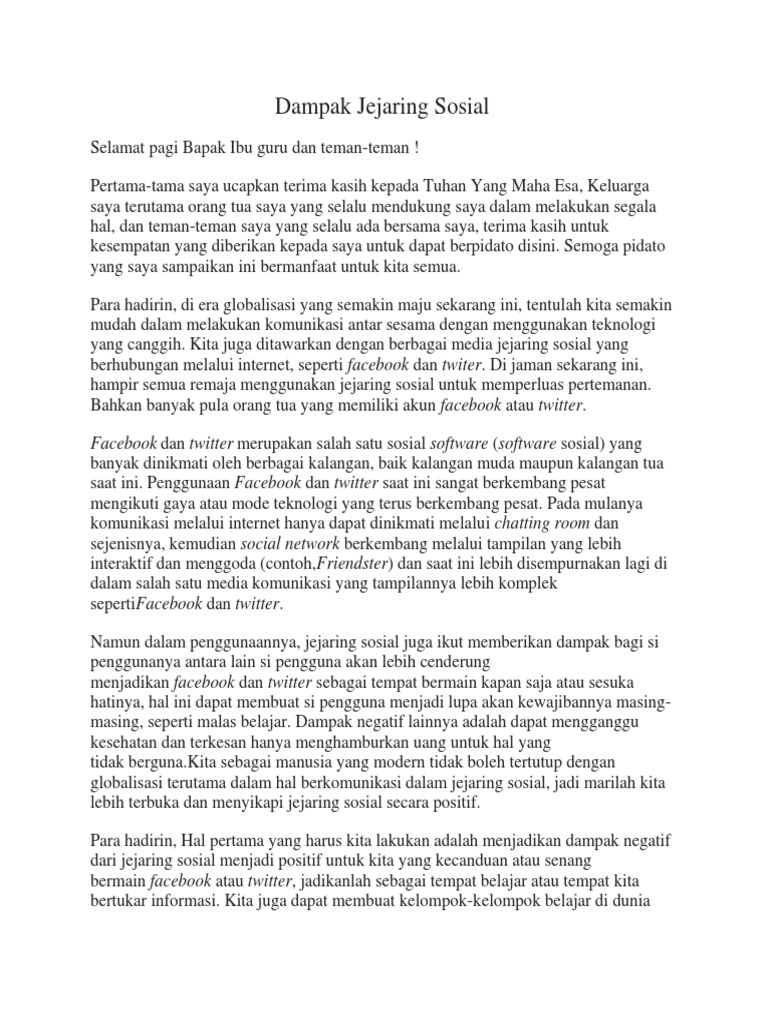 Contoh Pidato Pengaruh Media Sosial Facebook | Mas Roziq Blog